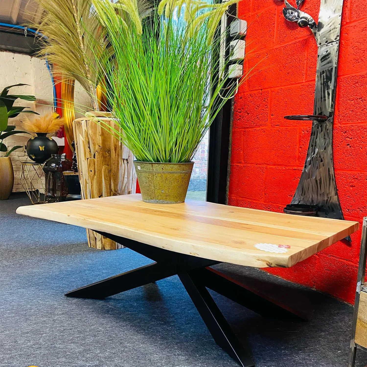 Table manguier pied mikado métal noir – Bords live edge naturels – Épaisseur 6 cm – 220 à 260 cm – Modèle Ardèche | Dwelling Interiors