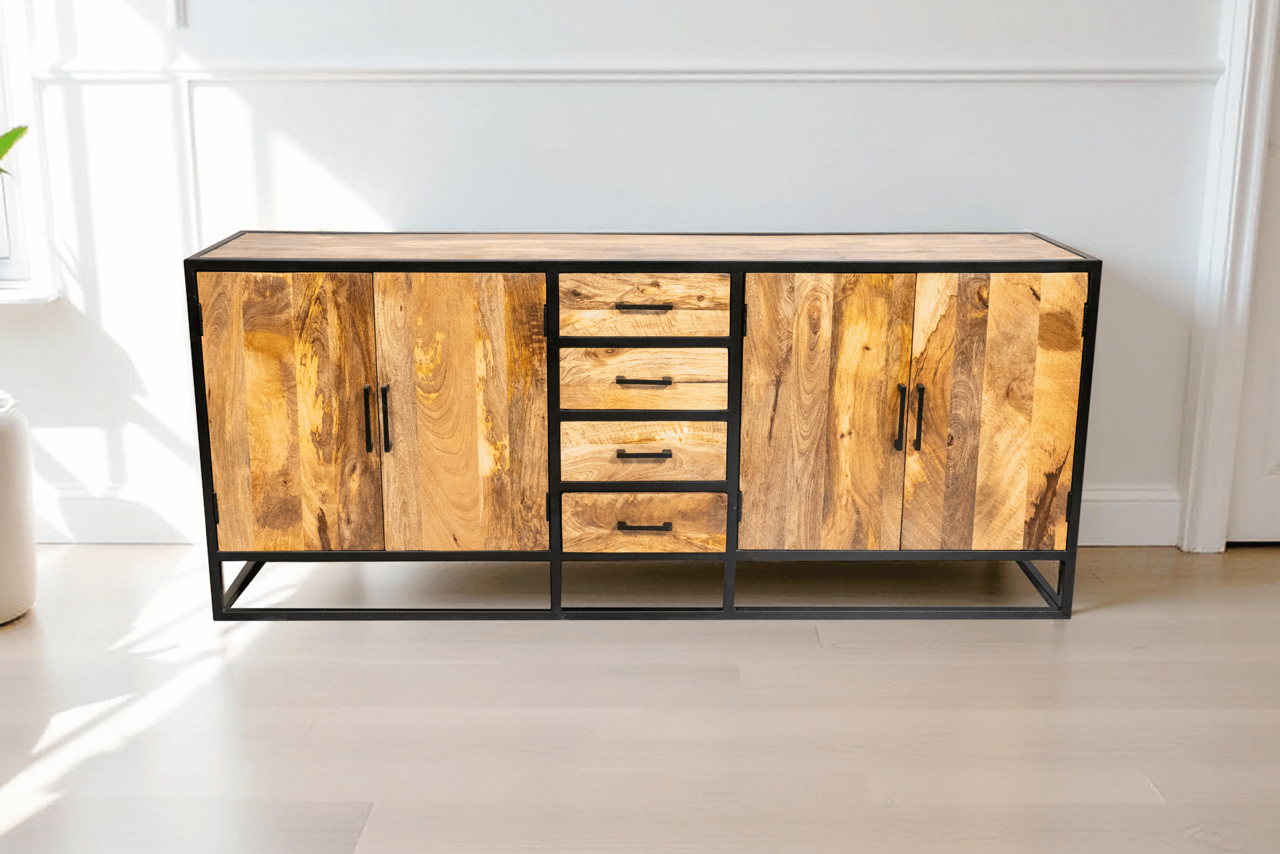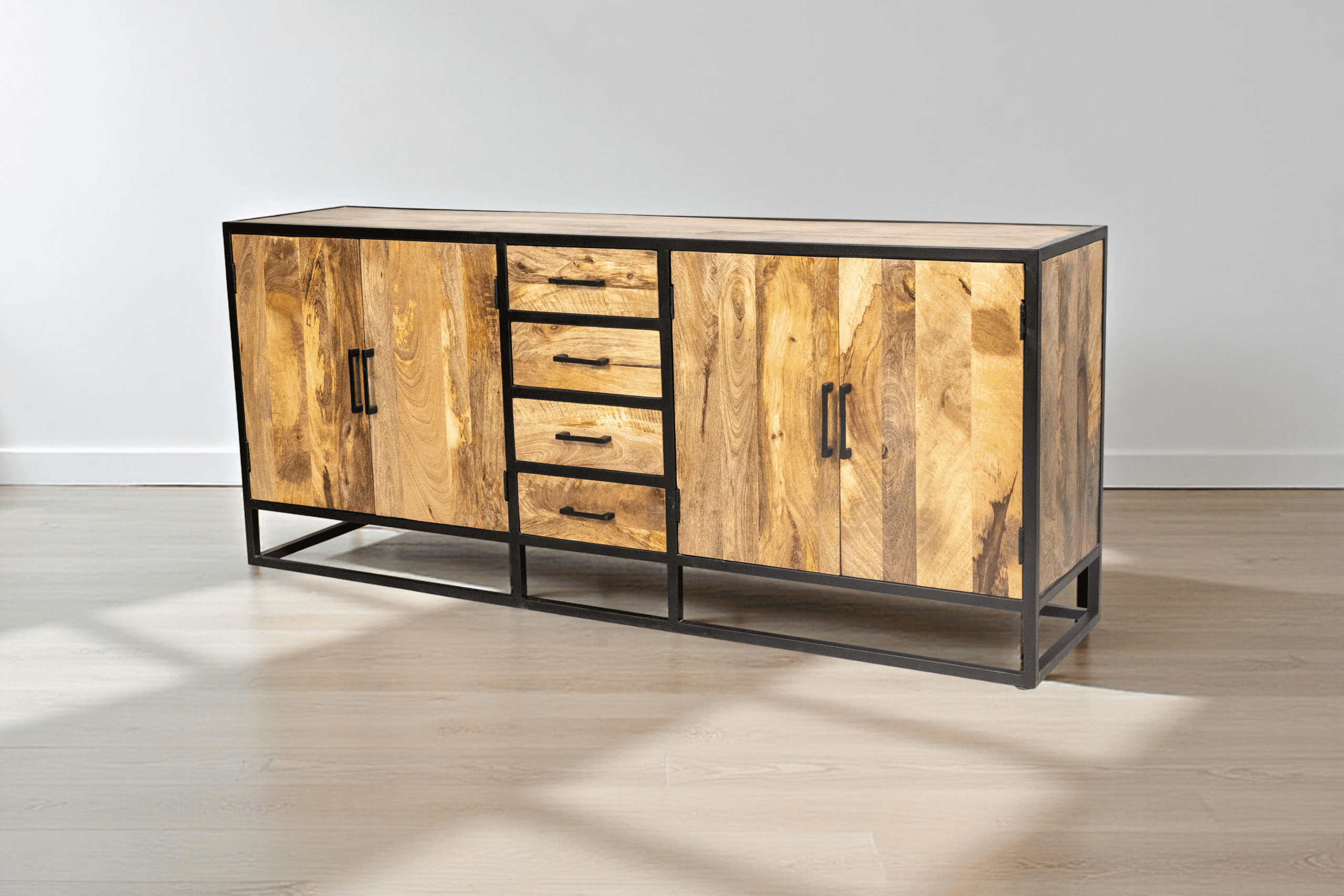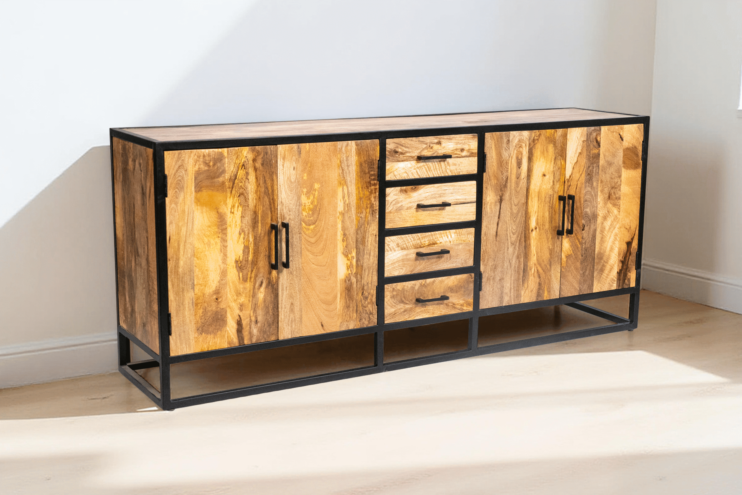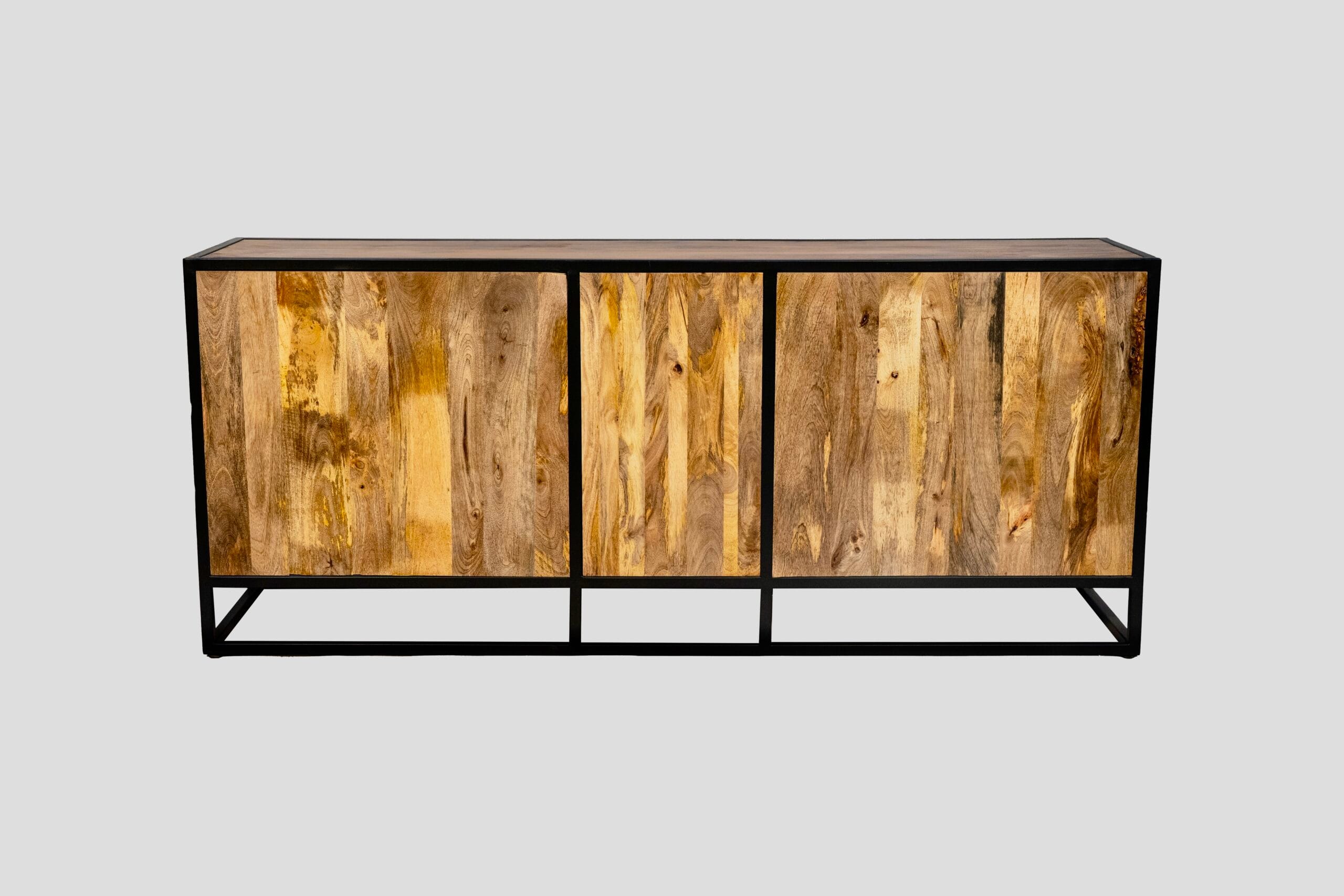 Bahut bas en manguier massif et métal – Collection Toulouse – 200 cm