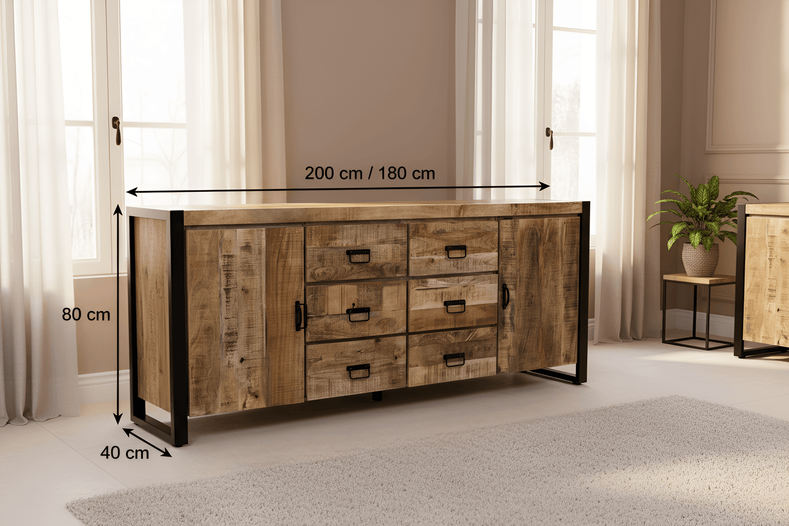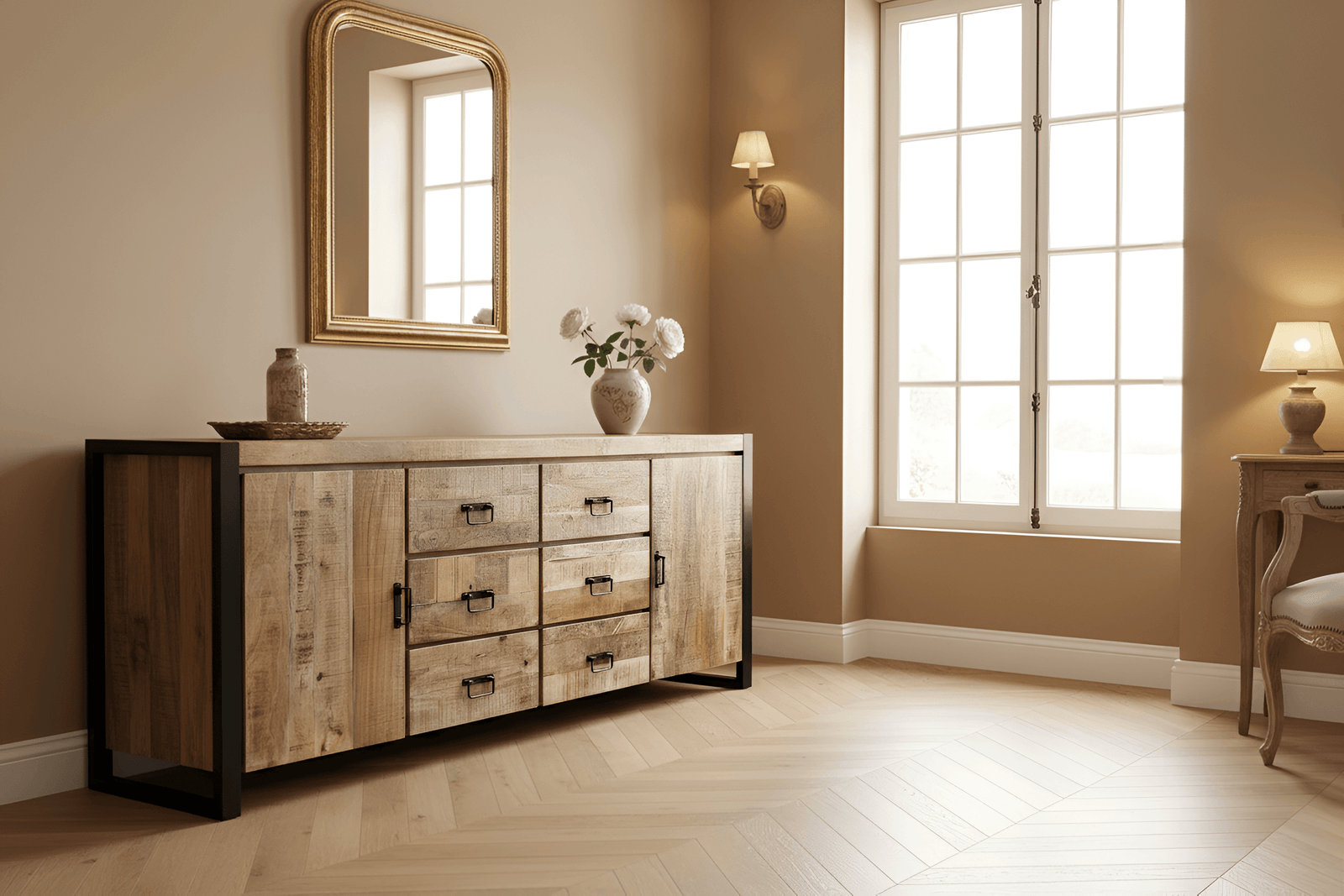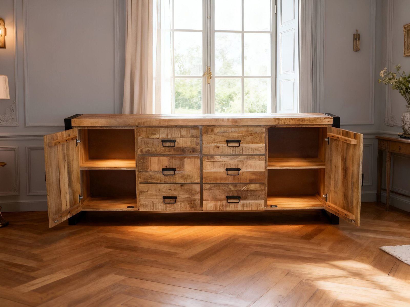 Grand bahut manguier massif : l’élégance industrielle dans votre salon