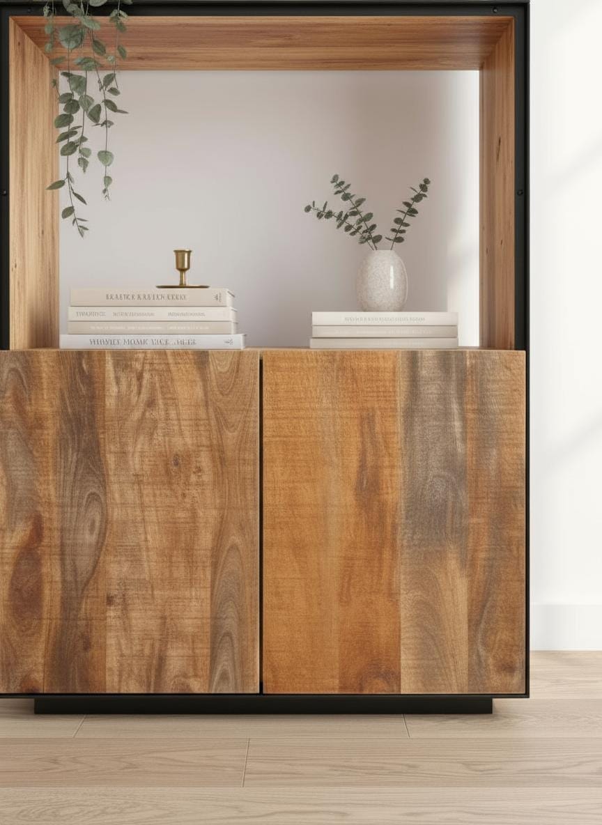 Chaque pièce en bois de manguier présente un veinage unique, faisant de votre bibliothèque Aurillac un meuble singulier et intemporel. Polyvalente, elle s’intègre avec élégance dans un salon, un bureau, une chambre ou une entrée, et s’accorde aussi bien avec un style industriel que scandinave ou moderne.