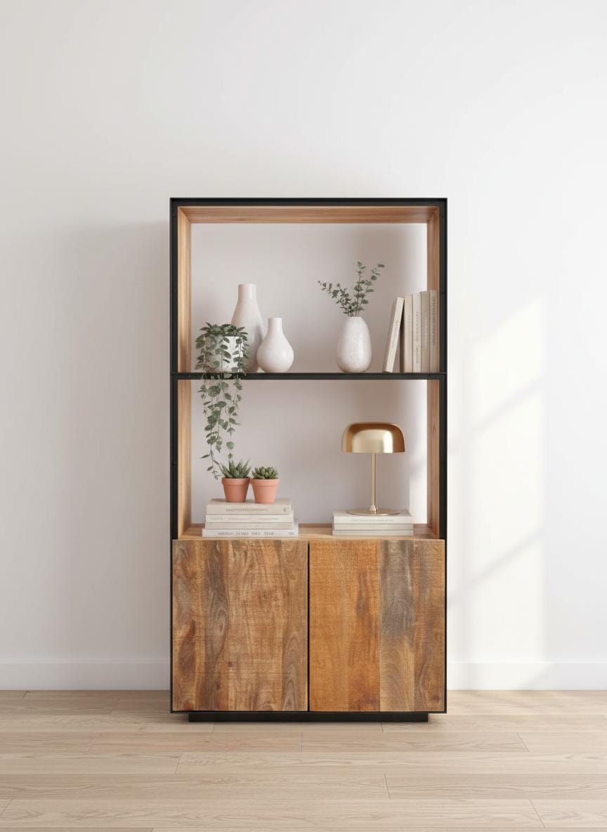 Bibliothèque 2 Portes en Bois de Manguier et Métal – Aurillac 180 cm – Dwelling Interiors