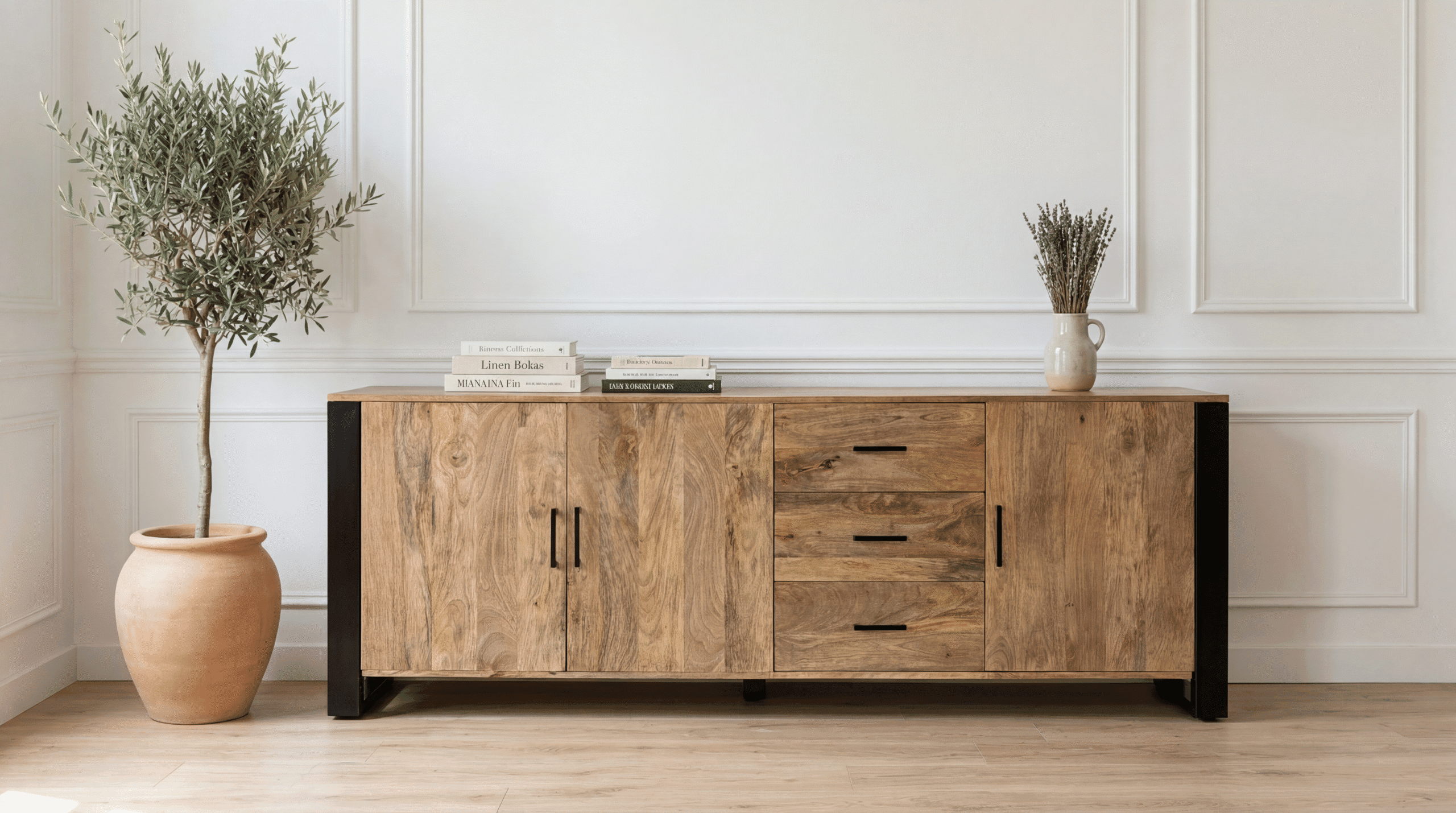 Le buffet industriel manguier massif Toulouse de Dwelling Interiors s’impose naturellement dans tout intérieur qui aime le caractère et les matériaux nobles. En effet, ses 220 cm de longueur, ses pieds en métal noir et son manguier massif 100% — sans aucun MDF, jusqu’au fond des tiroirs et au dos du meuble — en font un meuble hors du commun. Grâce à ses 3 tiroirs spacieux et ses 3 portes avec étagères intérieures, il offre un rangement généreux et parfaitement structuré. Ainsi, le modèle Toulouse devient la pièce centrale d’une salle à manger au caractère affirmé.