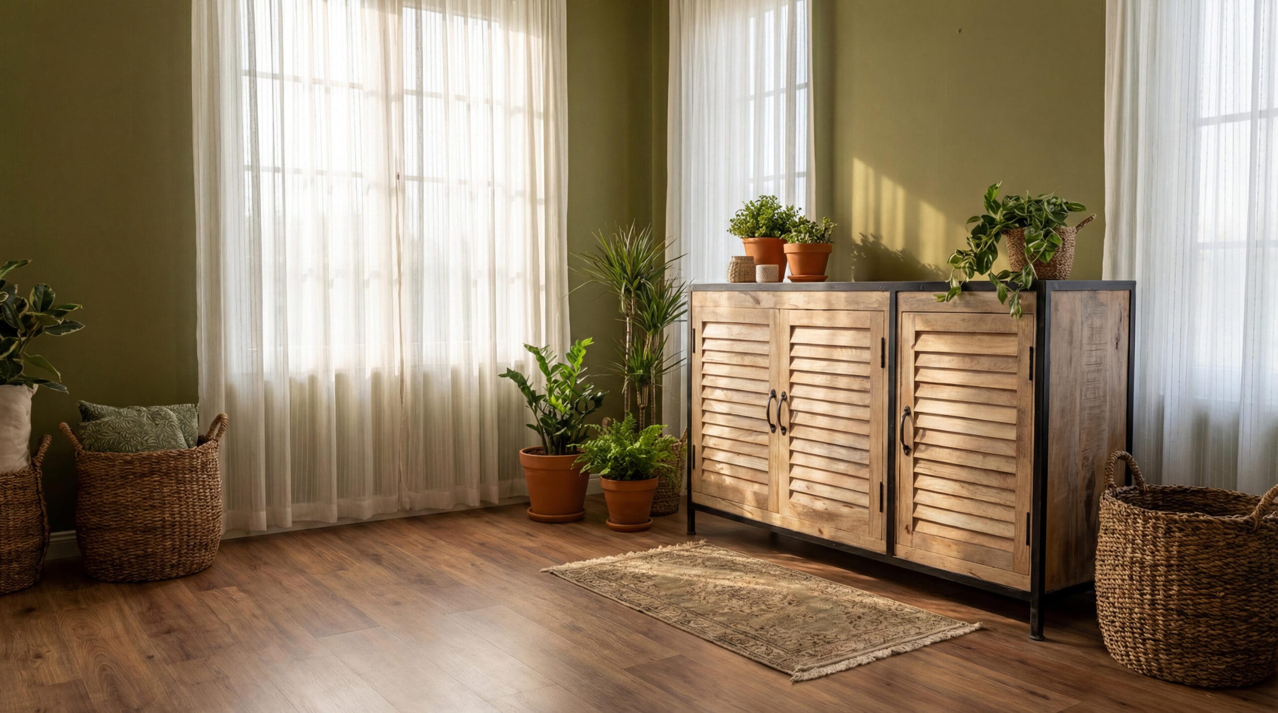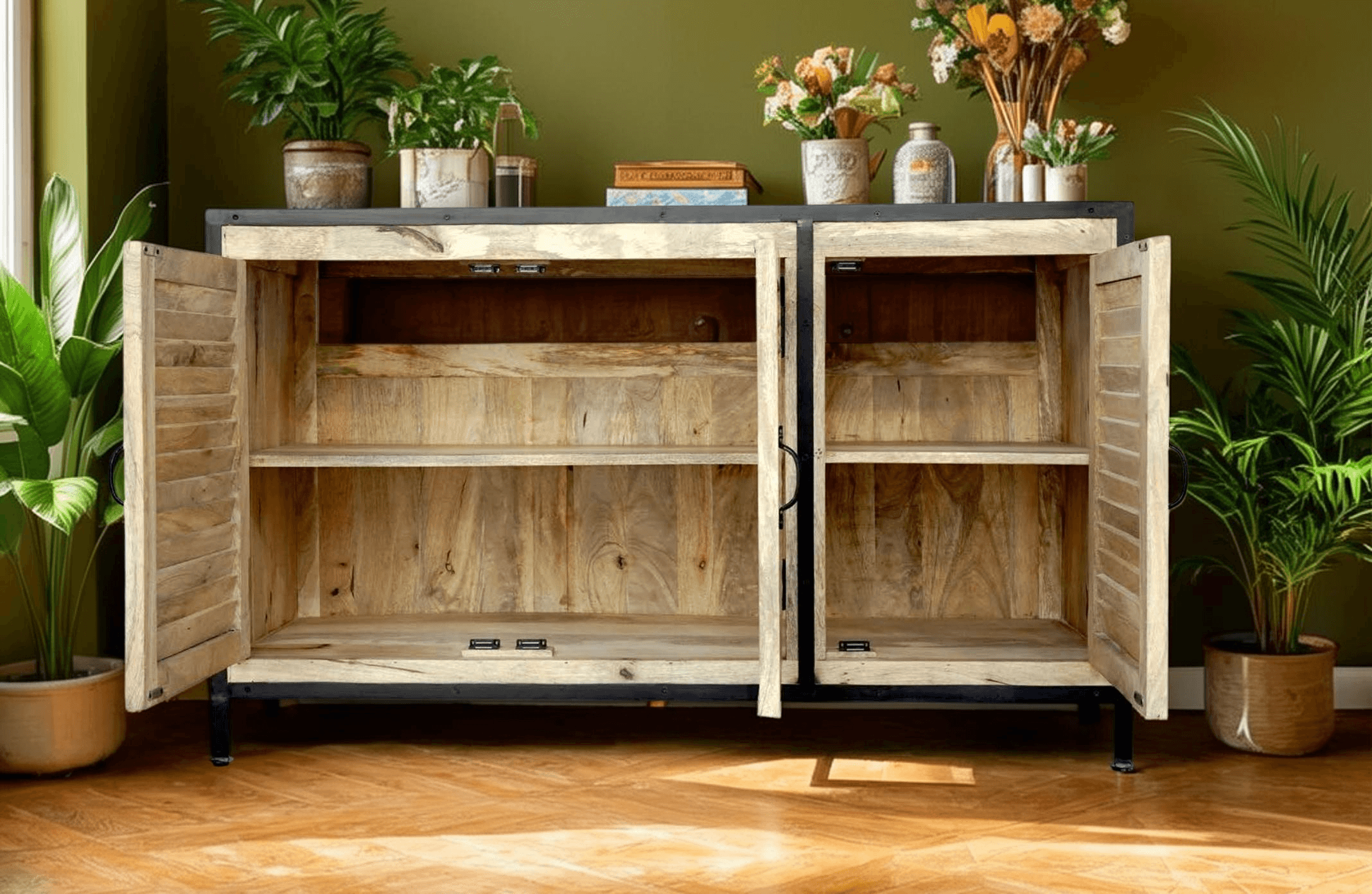 Trois portes battantes au style persienne pour une élégance intemporelle.