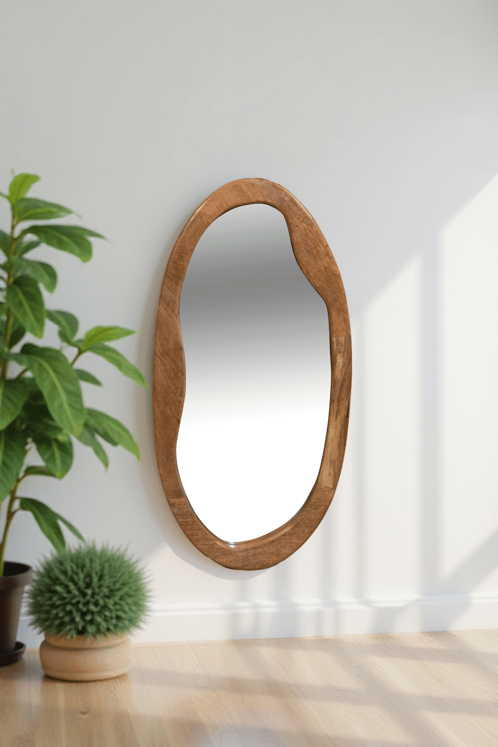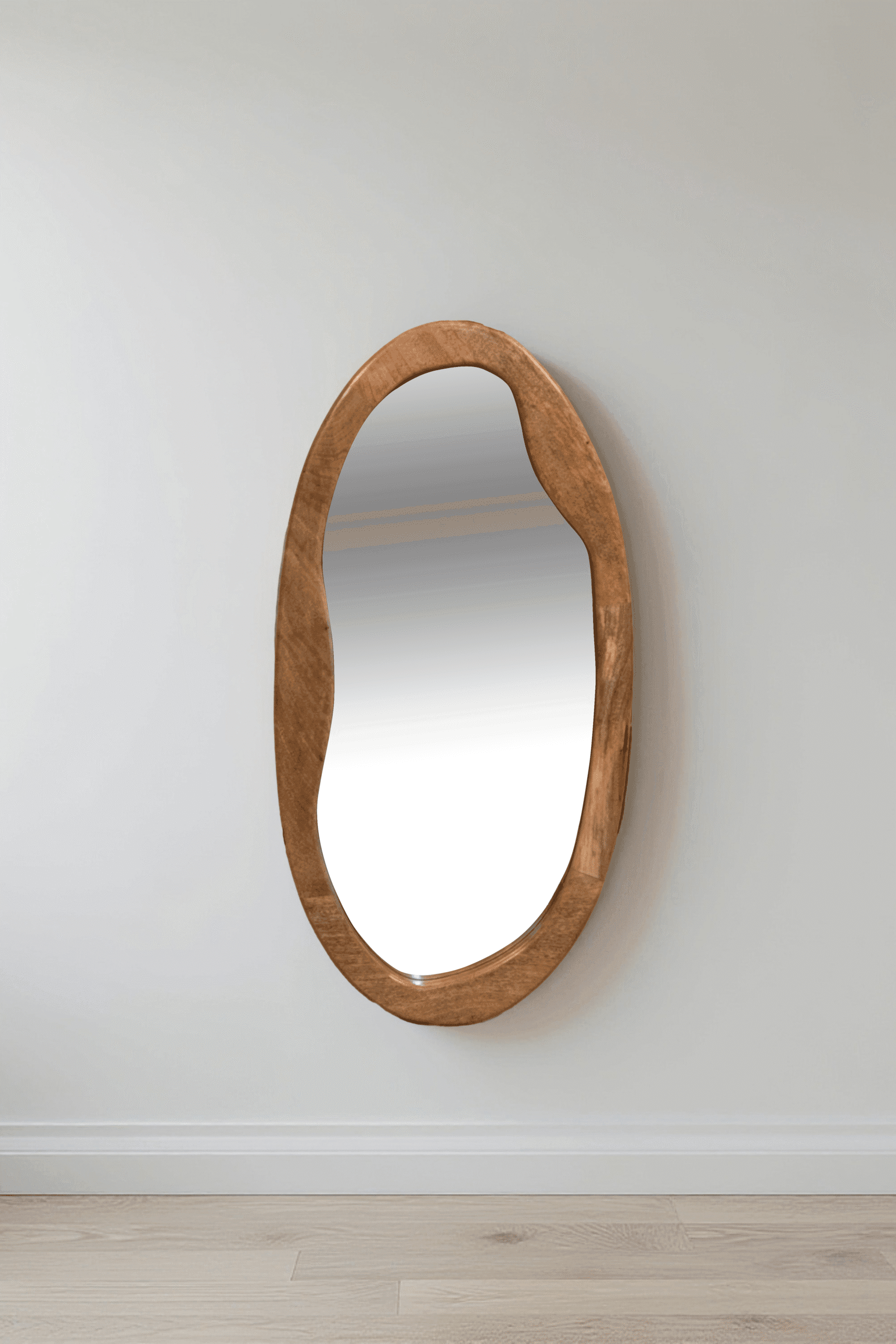 Miroir ovale en bois de manguier organique – Design organique et cadre sculptural 95×55 cm