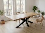 Fonctionnellement, le pied central offre une liberté totale pour le placement des chaises : plus de pieds de coin qui gênent les convives, plus de compromis sur l’espace aux extrémités — toute la longueur de la table est utilisable, même en configuration rallongée.