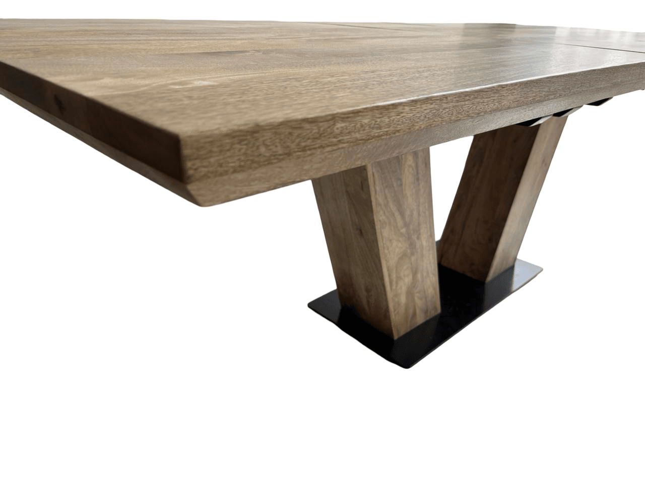 Faites de vos repas un moment d’exception avec la table à manger Marseille. Fabriquée artisanalement en manguier massif, elle se distingue par son spectaculaire piétement en « V » posé sur un socle métallique. Grâce à sa rallonge papillon centrale de 40 cm ultra-pratique, elle s’adapte en un clin d’œil à vos grandes tablées. Un design luxueux, à mi-chemin entre le minimalisme contemporain et l’élégance de l’Art déco.