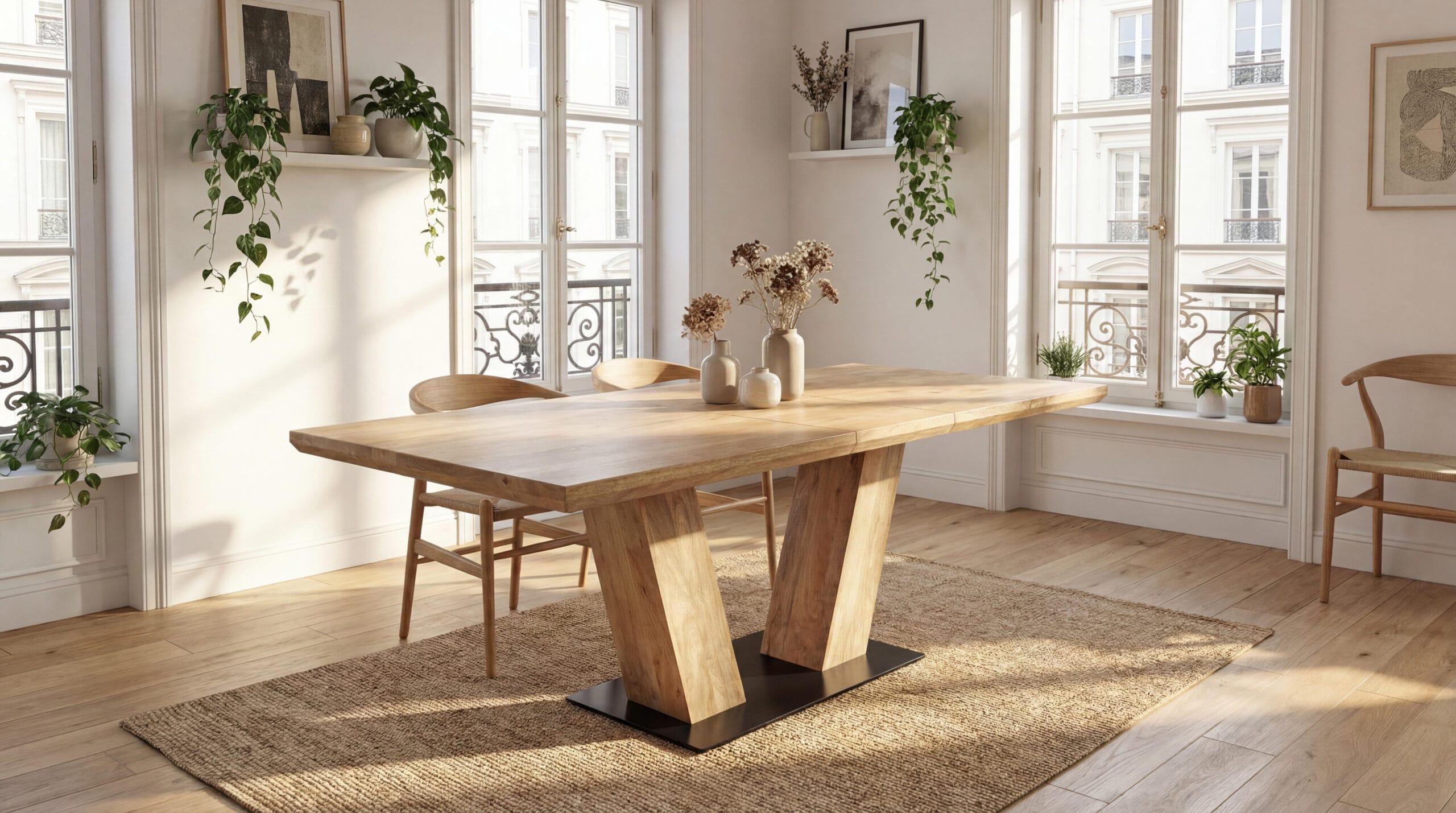 L’Élégance Architecturale au Cœur de votre Salle à Manger Découvrez la table rectangulaire Marseille, la nouvelle pièce maîtresse de votre intérieur signée Dwelling Interiors. Son design audacieux capte immédiatement le regard grâce à son piétement sculptural en forme de « V ». Inspirée par l’éclectisme luxueux de l’Art déco des années 30, cette table associe des lignes minimalistes épurées à la chaleur incomparable du bois tropical.