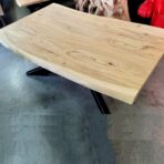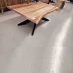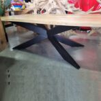 Son piètement central en métal noir, en forme de croix, apporte une touche industrielle tout en garantissant une stabilité parfaite. Cette structure élégante allège visuellement l’ensemble, pour un rendu à la fois solide et raffiné.