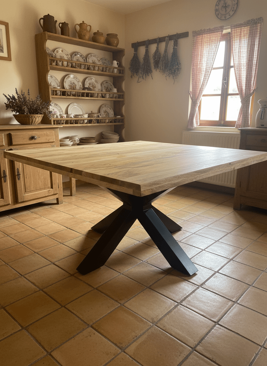 La table carrée manguier massif Pareloup choisit délibérément le format carré. Ce choix n’est pas anodin. Premièrement, un format carré place tous les convives à égale distance — personne n’est relégué aux extrémités. Deuxièmement, il favorise les échanges naturels et la convivialité authentique. Troisièmement, il s’intègre parfaitement dans des espaces aux proportions carrées ou dans des salles à manger qui veulent éviter la table rectangulaire conventionnelle. En outre, le format carré optimise l’espace perçu dans la pièce — la Pareloup semble moins imposante qu’une table rectangulaire de même capacité.