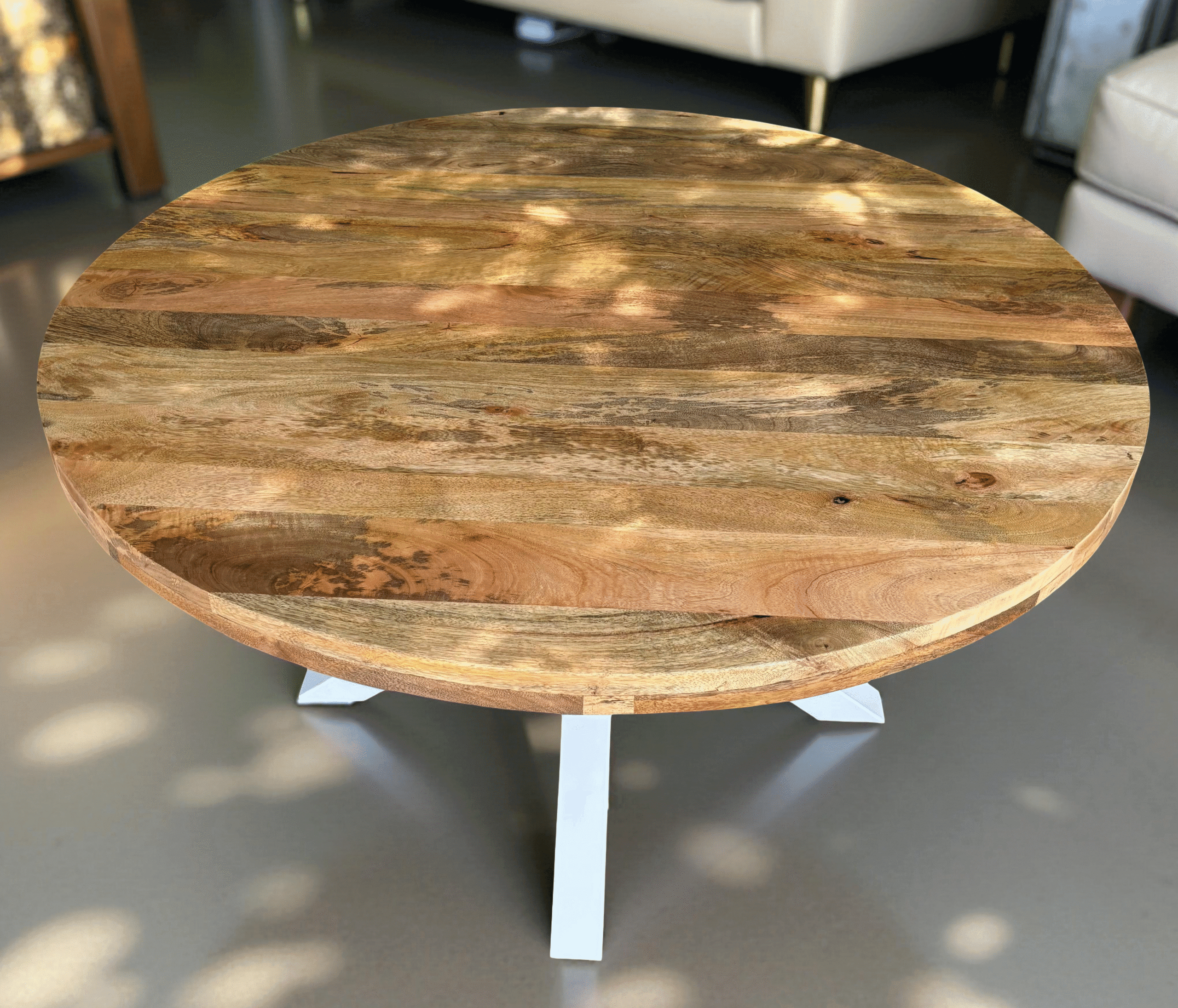Table industrielle ronde manguier métal – 100 à 150 cm pieds Blanc Bayonne