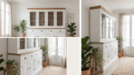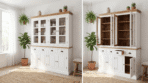 Sa hauteur de 220 cm et sa largeur de 200 cm en font une pièce architecturale à part entière — un meuble qui structure l’espace autant qu’il le décore. Il est idéalement pensé pour une grande salle à manger, où il pourra accueillir vaisselle de service, verres en cristal et objets de table. Il s’intègre également avec beaucoup de caractère dans un grand salon, une cuisine ouverte spacieuse ou une entrée généreuse, apportant partout cette atmosphère de maison de famille bien tenue qui fait la signature du style Campagne Française.